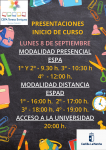 En e el archivo adjunto se accede al calendario y a los horarios de presentaciones de ESPA y ESPAD para este curso académico 2025-26.